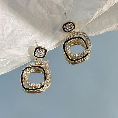 Korean Simple Double-Layer Square Diamond Stud Earrings Women'S Ins Style Retro Earrings 925 High-End Earrings