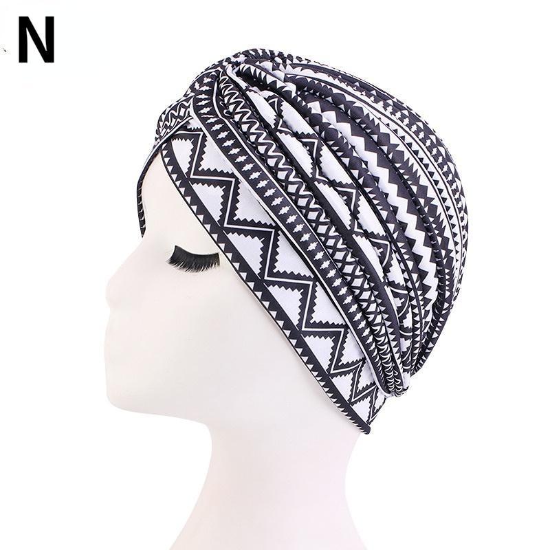 Women Print Flower Knot Cancer Ruffle Chemo Hat Beanie Scarf Turban Head Wrap Knitted Cap Hair Loss Accessories