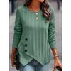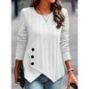 4 Solid Color Jacquard Long Sleeved Autumn Round Neck Button T-shirt Simple Versatile Daily Street Women's Top