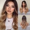 Brown Gold Mixed Color Medium Part Long Hair Curly Fake Head Set Big Wave Gradient Change Wig
