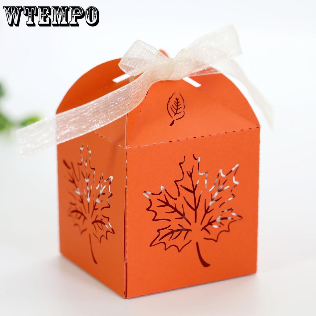 WTEMPO 10pcs Fall Maple Leaf Hollow Party Gift Boxes The Thanksgiving Day Pumpkin Pie Sweet Potato Packaging Boxes, Creative DIY Orange Paper Boxes