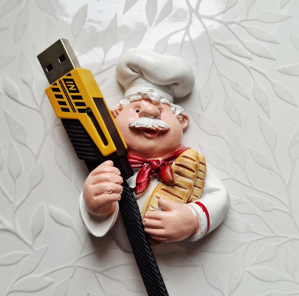 Holder-hanger for electric cord. Doll "Chef in a cap with a dish"! Thank you, Joom - whole and amusing.