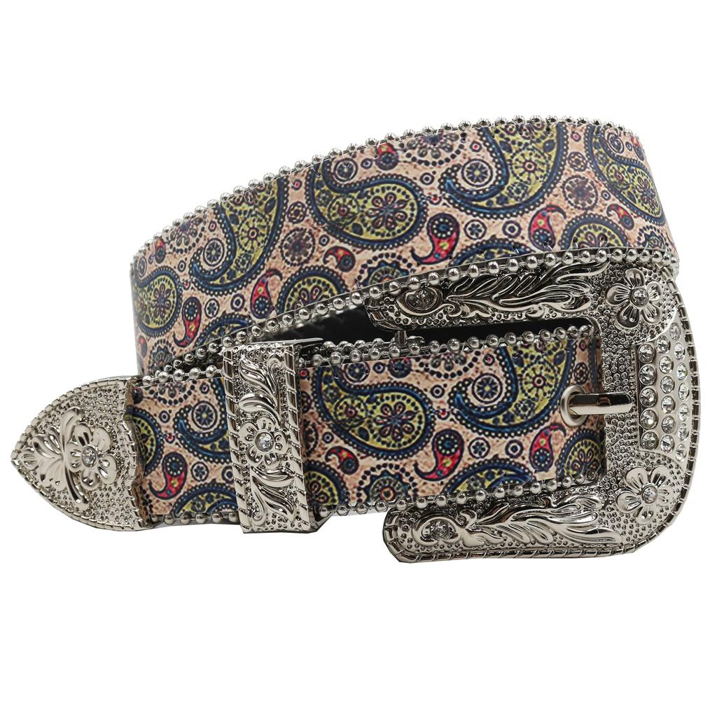 Trendy Original Design Rhinestone Printed Belt, Men'S And Women'S Trendy Personalized Pu Leather Belt