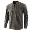 Men's Spring Solid Color Retro Durable Stand Up Collar Shirt, Youth Long Sleeved Casual Pullover Top