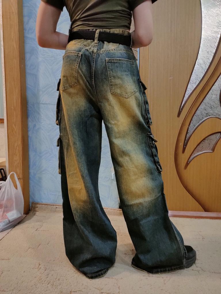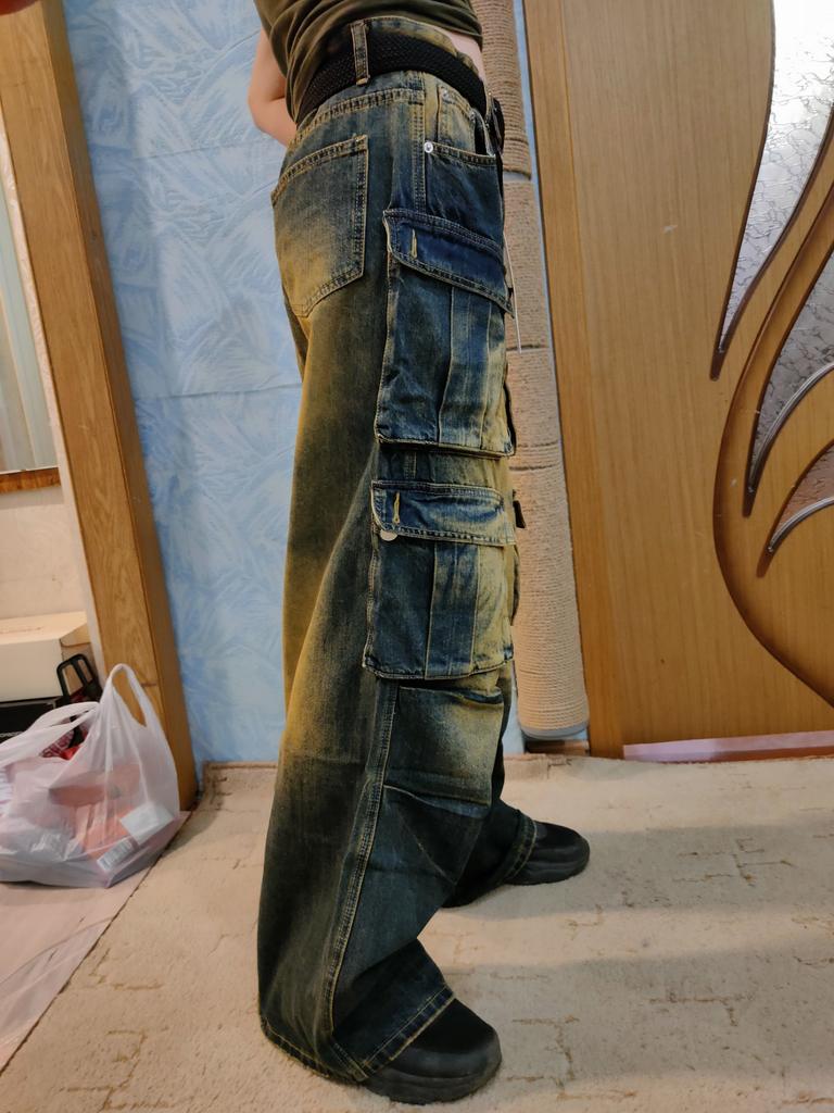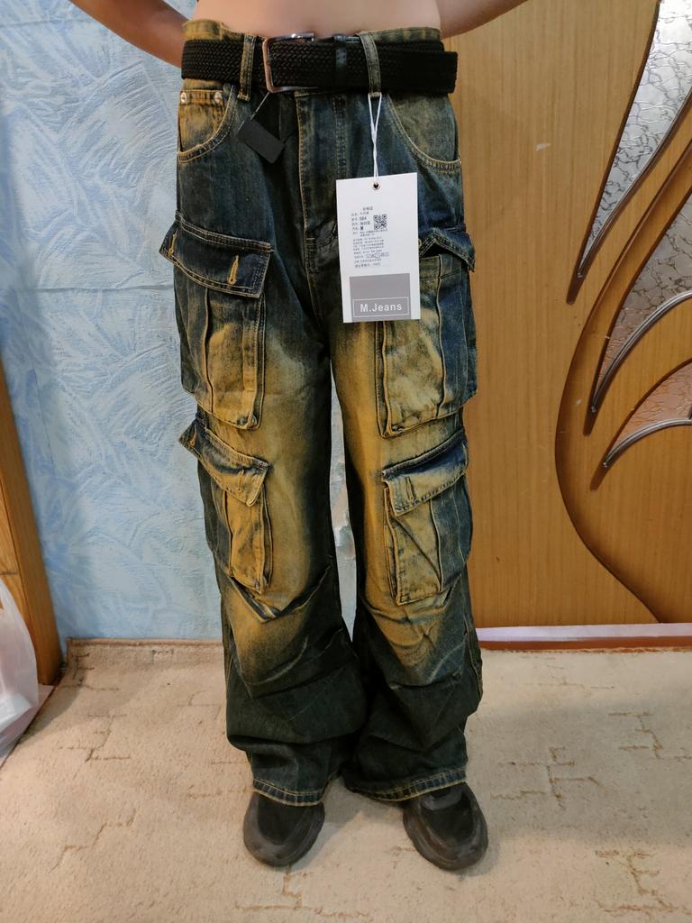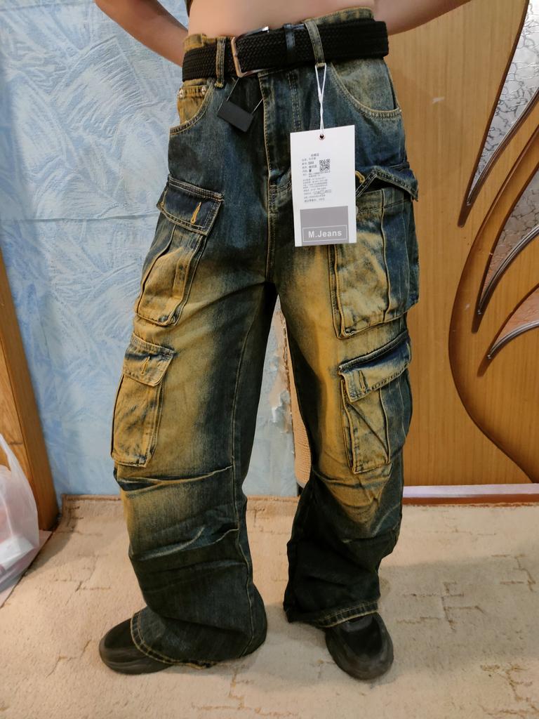 Vintage Overalls Men's Jeans High Street Loose Straight Multi Pockets Wide Leg Pants Straight Loose Jeans for Men Fashionable and Comfortable Pants