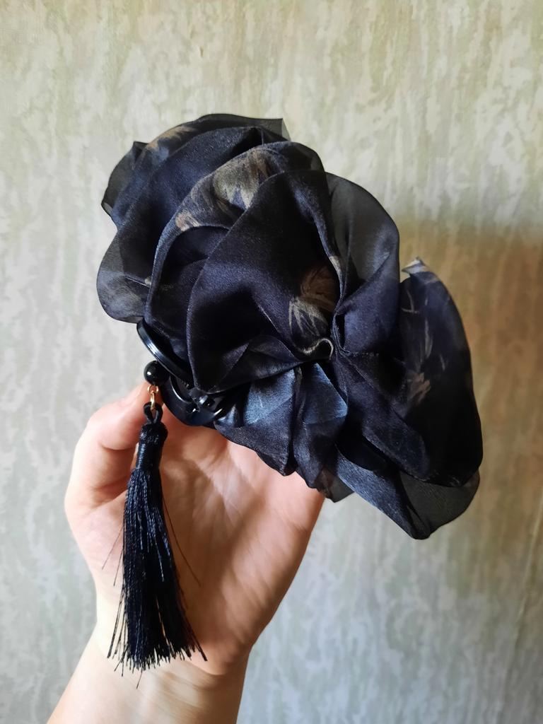 New Chinese Style Mesh Bow Hair Clip For Female Simulated Wig Braid At The Back Of The Head Shark Clip Headwear