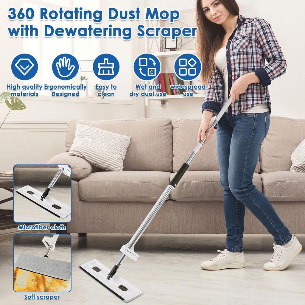 Flat Floor Mop 360 ° Rotating Floor Mop Extra Large Length 137 Cm Wet and Dry Hands-Free Dust Mop for Kitchen Living Room