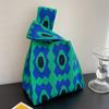 Cartoon Diamond Grid Knitting Bag New Vest Shoulder Bag Fashion Simple Tote Bag Korean Version Handbag Leisure Canvas Women Bags