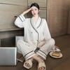 Autumn New Two-piece Style Pajamas for Women Ice Silk Jacquard Dark Striped Pajamas Set