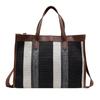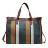 Large Capacity Canvas Bag Hand Carrying Student Class Crossbody Bag Striped Contrast Tote Bag