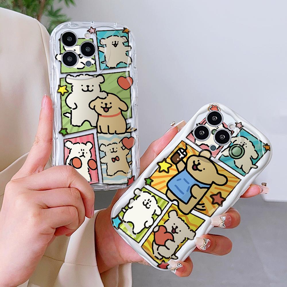 For iPhone 16 15 14 13 12 Samsung S24 S23 S22 A06 A13 A14 A15 A16 A55 Redmi Note 13 12 Cartoon Lovely Dog Soft Wavy Edge Design Phone Casing