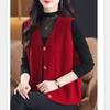 Women's Vest Autumn and Winter New V-neck Cardigan Sleeveless Solid Color Sweater Vest Loose Knitted Vest Mother's