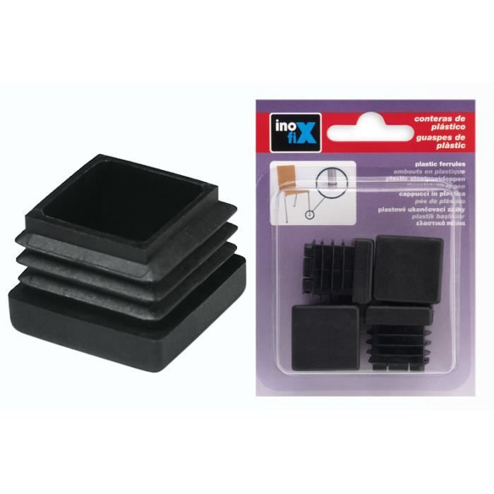 Embout pour pied carré - INOFIX - 20 mm intérieur - Noir - Lot de 4 - Plastique