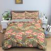Flower Duvet Cover Set King Size Pink Flowers Green Leaves Pattern Quilt Cover For Teen Girl Microfiber Floral Theme Quilt Cover