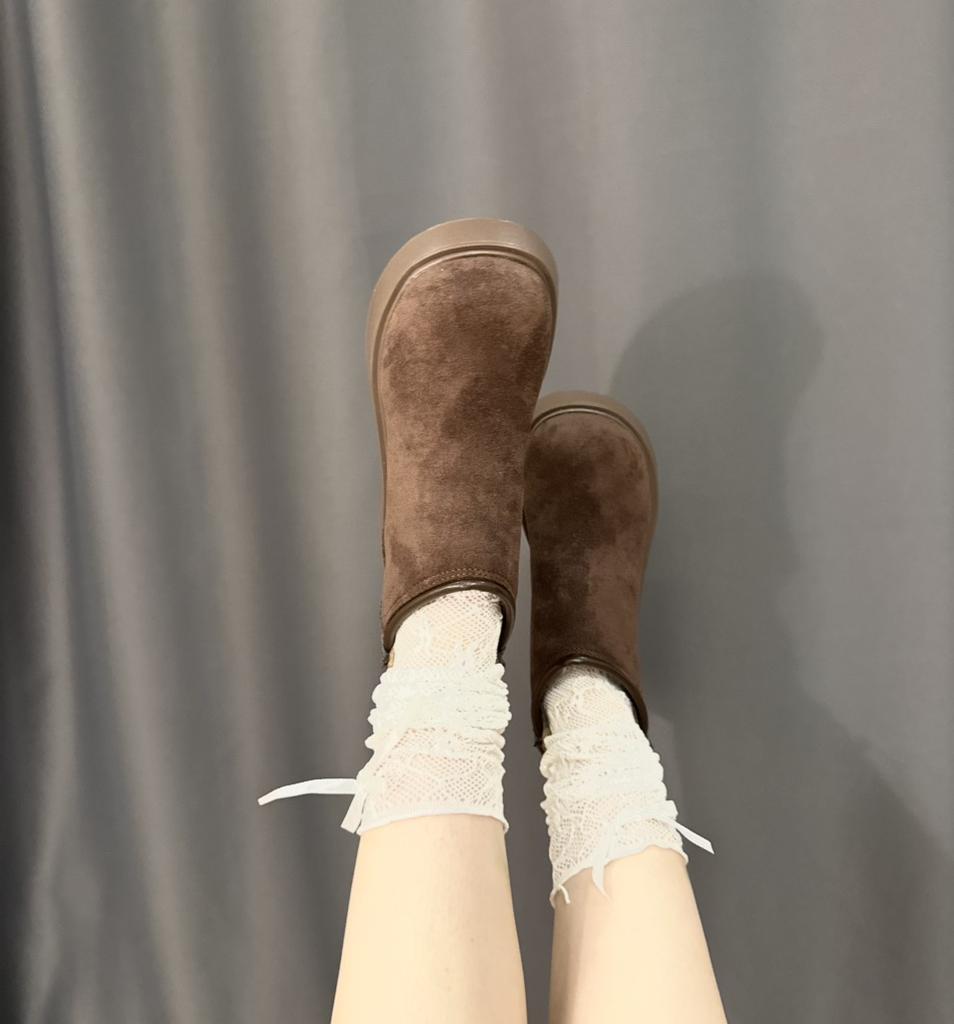 Flats Platform Suede Ankle Boots Winter Snow Plush Warm Cotton Shoes Mid Heels Fashion Boots 2025 Trend Goth Chelsea Botas Mujer