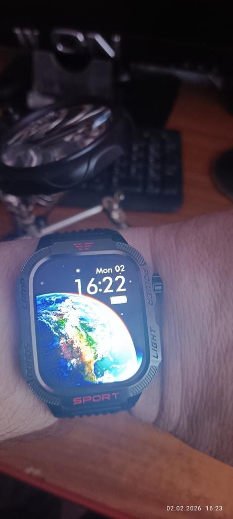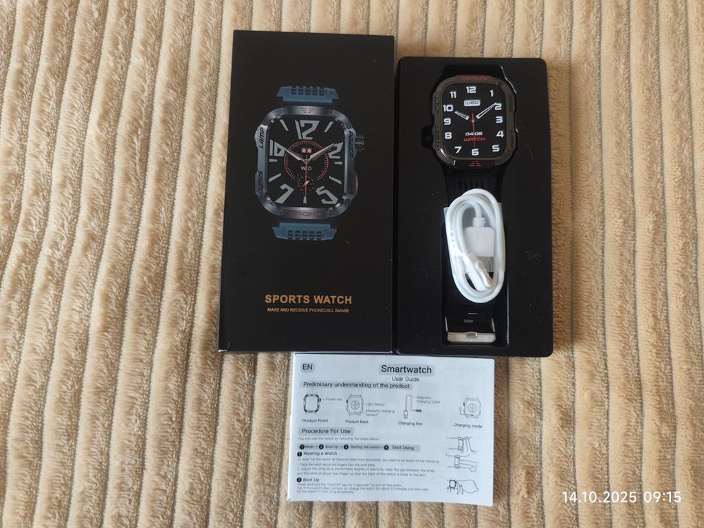 Smart watch with a large 2.01-inch screen, high resolution, and a powerful 600mAh battery that lasts up to 7 days of operation and 30 days of standby time.. • Waterproof (IP68) • Measures pulse, blood pressure, sleep, and breathing. • It has sports, alarm, music, weather, calendar, calculator, and camera. • Supports calls, call history, and voice assistant • Available on Android and iPhone mobiles • Notifications for applications such as WhatsApp, Facebook, Twitter, etc. • It has multiple interfaces and you can change them or download others. • It has 9 sports modes on the watch and more on the app In the box: Watch, magnetic charger, manual, and original box