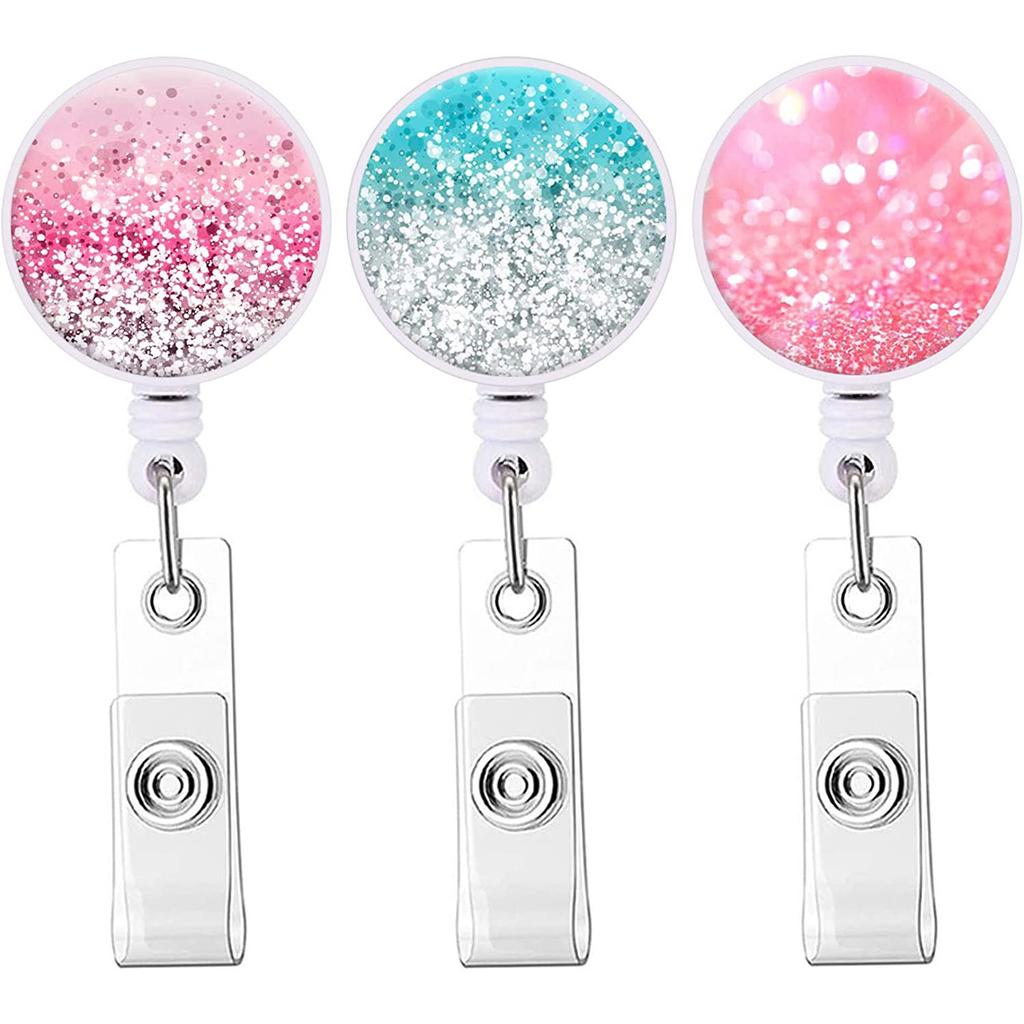 Glitter Sequins Drops Retractable Badge Reel Id Badge Holder for Nurse Doctor Name Holder Retractable Keychain