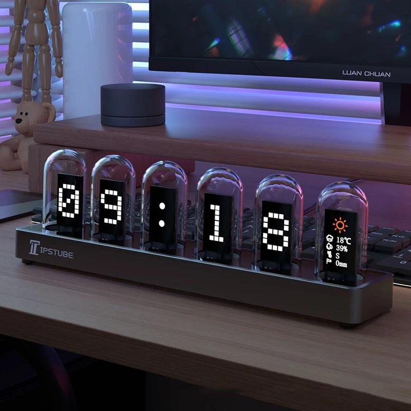 Smart Retro Silent Alarm Clocks RGB Digital Led Luxury Elegant Nixie Tube Clock Flip Nordic Desk Clock Room Unique Design Clock Office Decorating