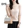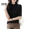 Women Sweater Half High Collar Half Sleeve Knitting Tops Solid Color Slim Fit Sweater Tops Commuting Street Wear