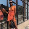 Women's Deep V-neck Hollowed-out Peplum Wrap Hip Sexy Dress