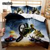 Motorcycle Duvet Cover Set Motocross Racing Bedding Dirt Bike Extreme Sports for Men Teens Boys Kids Polyester Comforter Cover