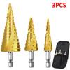 3pcs HSS Titanium-Coated Spiral Groove Step Drill Bit 4-12 4-20 4-32 Power Tool Step Drill Bits Set Metal Multi-Hole Taper Drill