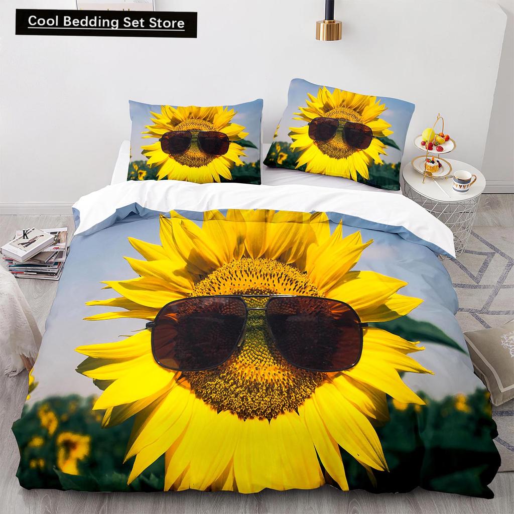Yellow Sunflowers King Queen Duvet Cover Beautiful Floral Bedding Set for Kids Girls Women Girly Lovely Flowers Soft Quilt Cover