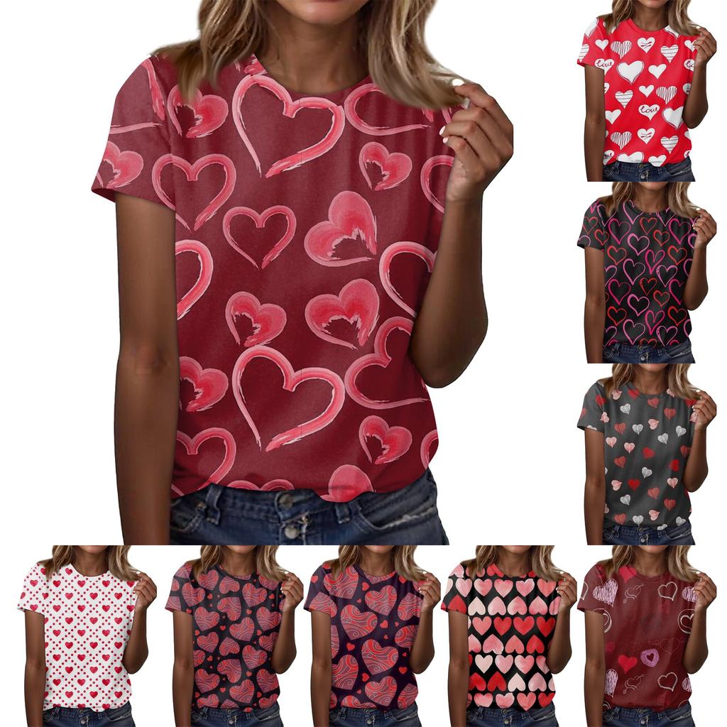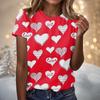 Women's Fashion Casual Short Sleeve Valentine's Day Printed Round Neck T-Shirt Top