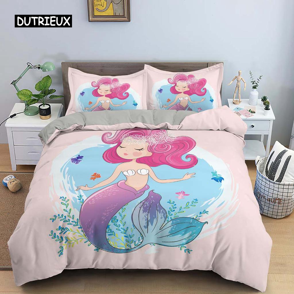 Mermaid Bedding Set Duvet Cover for Girls Cartoon Mermaid Comforter Cover for Kids Teens Birthday Gifts for Bedroom Decorations