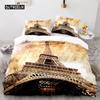 Eiffel Tower Duvet Cover Set King Size Paris Cityscape Twin Bedding Set Modern French Style Polyester Comforter Cover Boys Girls