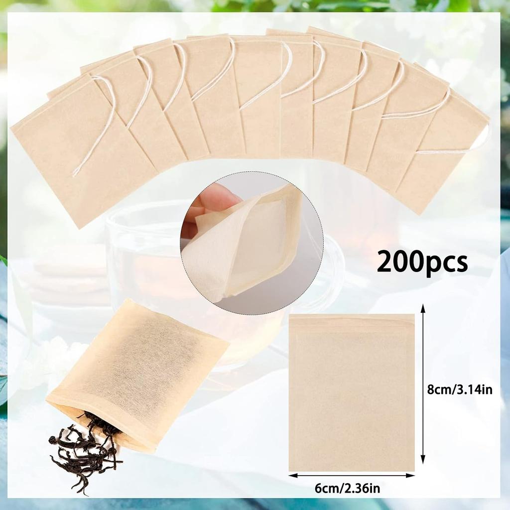 200pcs Bulk Tea Bags, Disposable Tea Bags with Drawstring, Tea Filter Bags Empty Tea Bags for Loose Leaf Tea and Coffee