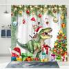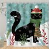 Festive Christmas Shower Curtain - Funny Cat & Dinosaur Design with Xmas Ornaments, Waterproof Polyester Bathroom Decor, 72x72in