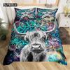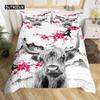 Highland Cow Bedding Set Polyester Bull Cattle Flowers Quilt Cover Western Wild Animal Duvet Cover Farmhouse Cow Bedspread Cover