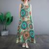 Summer Retro Loose Cotton Linen Printed Round Neck Sleeveless Vest Mid Length Dress for Women Casual Dresses