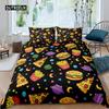 American Fast Food Duvet Cover Set Full Size Polyester Pizza Hotdog Hamburger Print Bedding Set French Fries Cartoon Quilt Cover