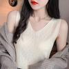 WTEMPO Women V-neck Loose Knitted Tank Tops Spring Summer Solid Color Elastic Camisole Vests Short Large Size Knitted Base Vests