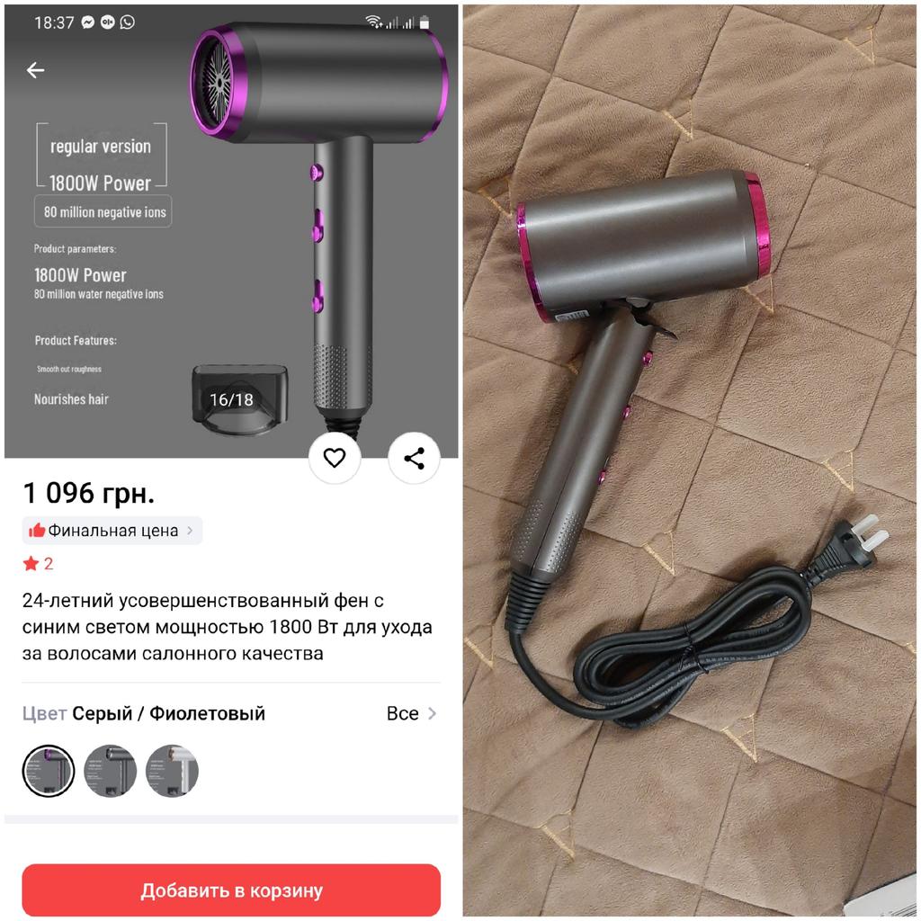 The hairdryer was packed in a cardboard box without foam or other protective filler. The item moved freely inside the box. Probably because of this, it was damaged during delivery. I am attaching photos. They refuse to refund the money. The seller refused the return without valid reasons.