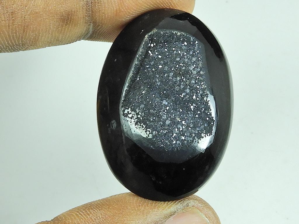 27X40X07MM Dyed Black Onyx Druzy Agate Oval Cabochon Loose Gemstone 80Cts. SK-4673