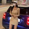 Autumn New Polo Collar Long Sleeve Women Knitted Dress Vintage Elegant Slim Fit Winter Base Sweater Dresses Women Casual High Waist Black Dress 25967