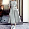 Mid Sleeve Dress with Large Skirt, Korean Version with Five Quarter Sleeves and Waist Cinched Long Skirt, High Waist Round Neck Small Black Skirt
