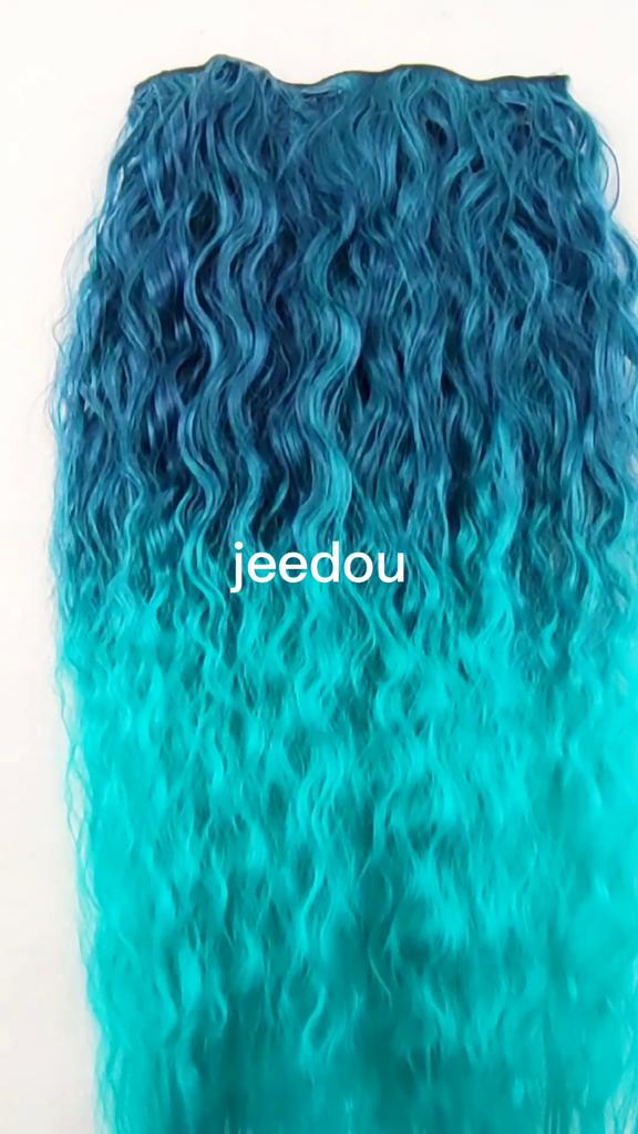 Kinky Curly Hair Clip In Hair Extension One Piece With 5Clips Colorful Ombre Color Cosplay Hairpieces