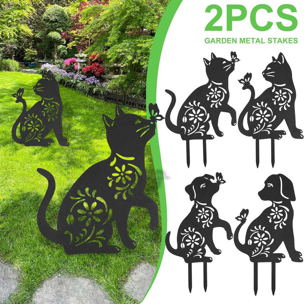 2Pcs Metal Garden Animal Statues Decorative Simulation Cat Dog Lawn Stakes Creative Yard Art Deco for Home Outdoor Garden Yard