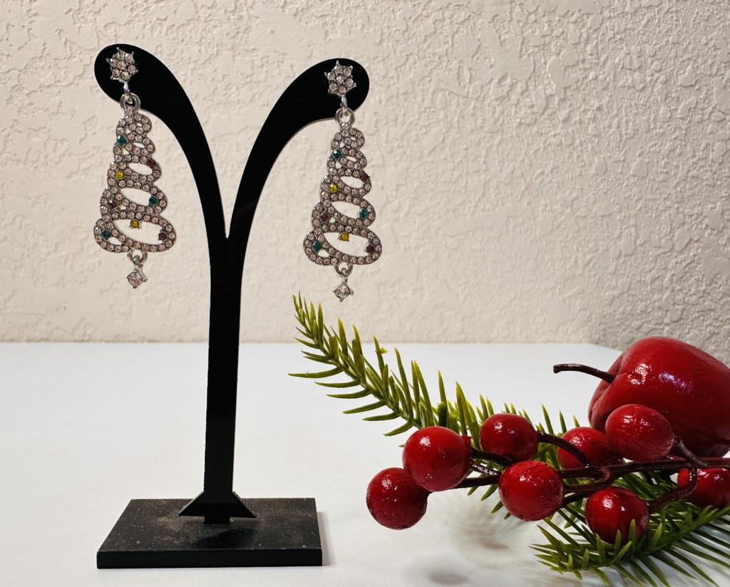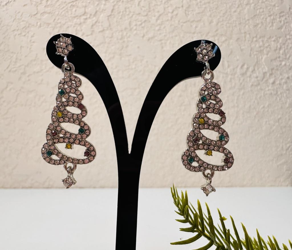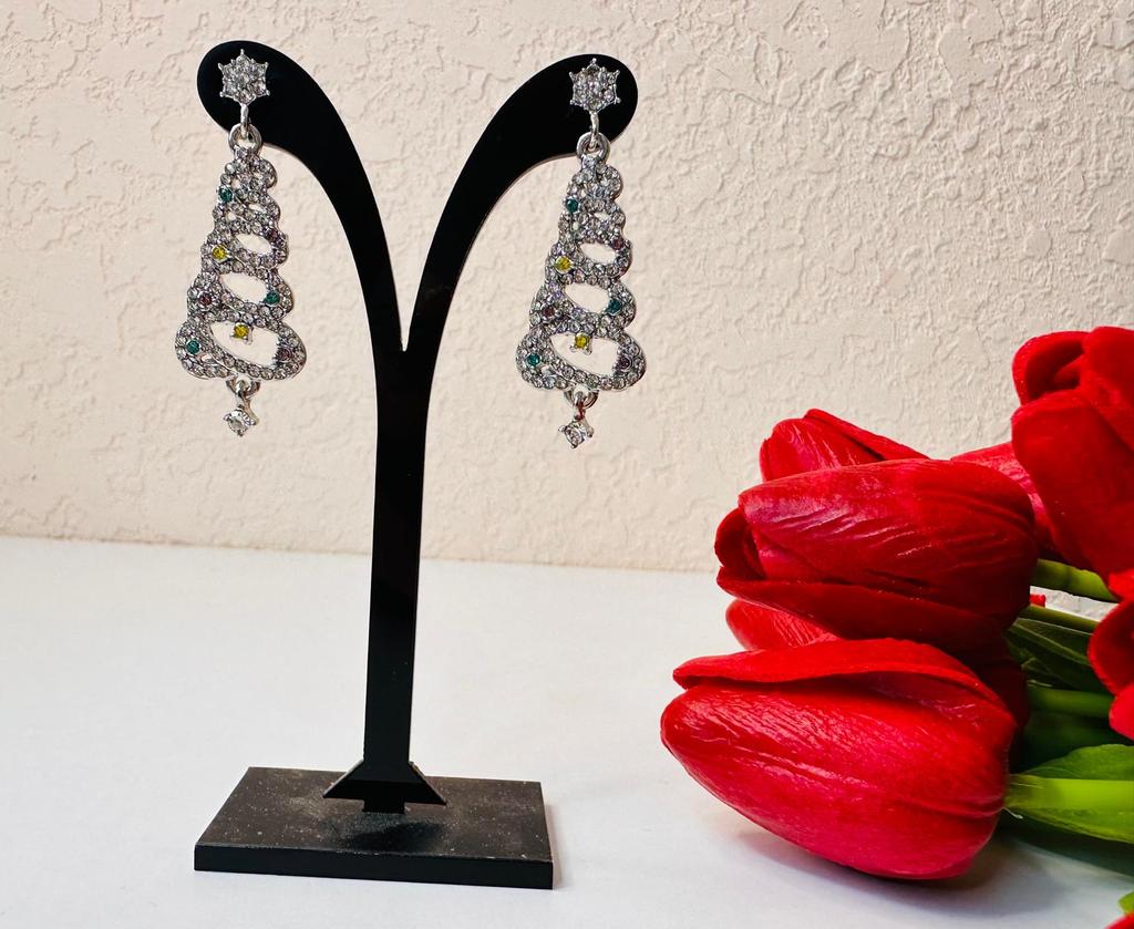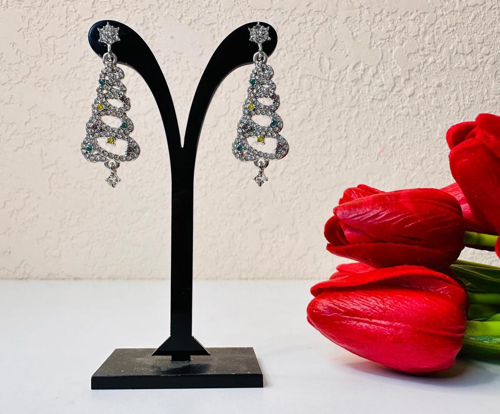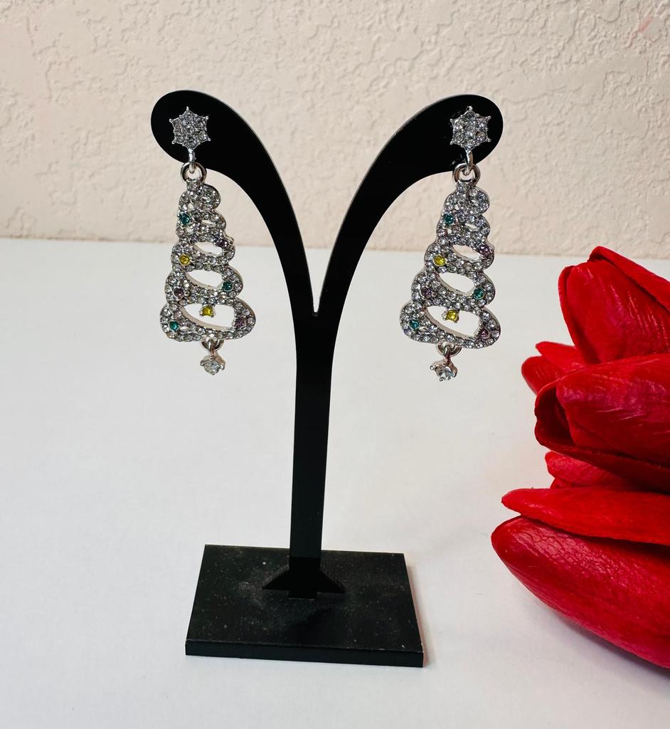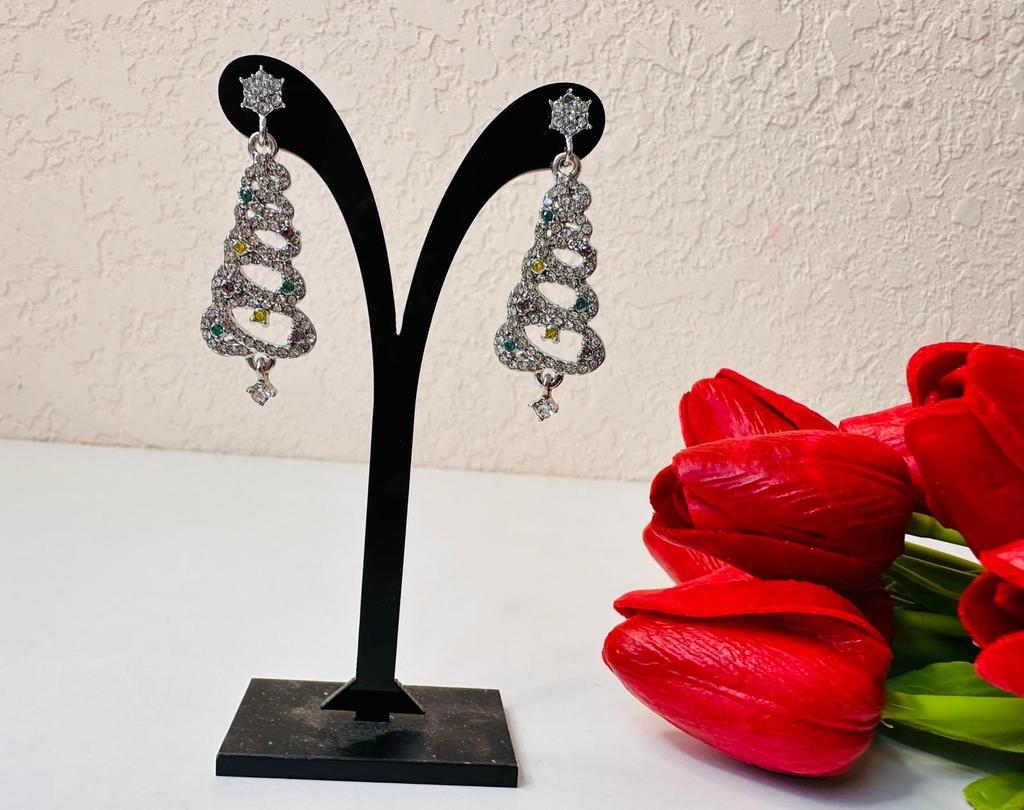 EARRINGS Gorgeous Christmas Tree Earrings with Crystals. They arrived in Italy with tracked shipping in 14 days in a combined package. Well packaged in a bubble wrap envelope they arrived intact. Packaging: plastic wrap In silver color metal in zinc alloy. Firm silicone back closure. They are not heavy despite their large size. They are about 5 cm long. No defects or glue stains. The crystals are well positioned, firm and extremely bright. Recommended purchase 👌