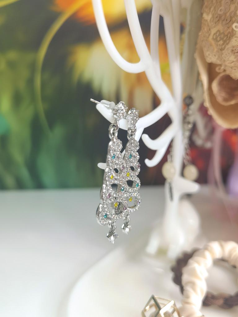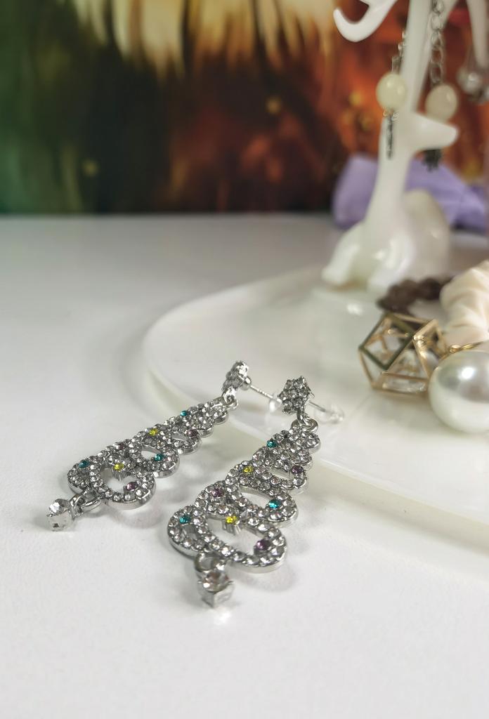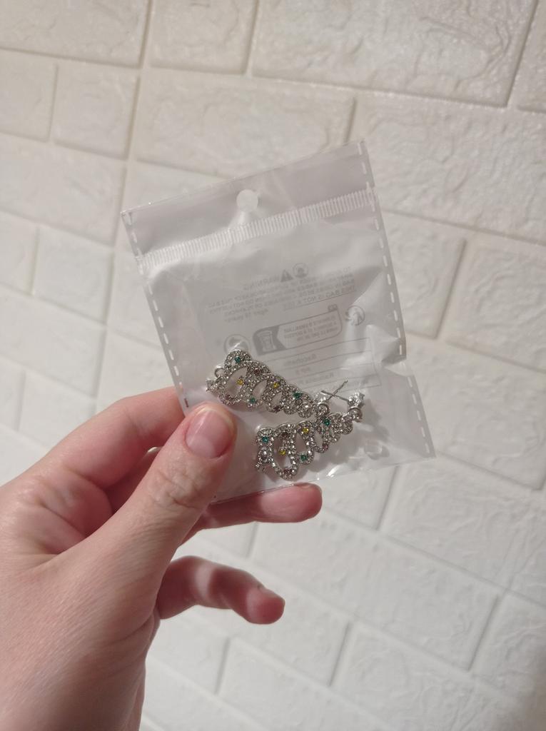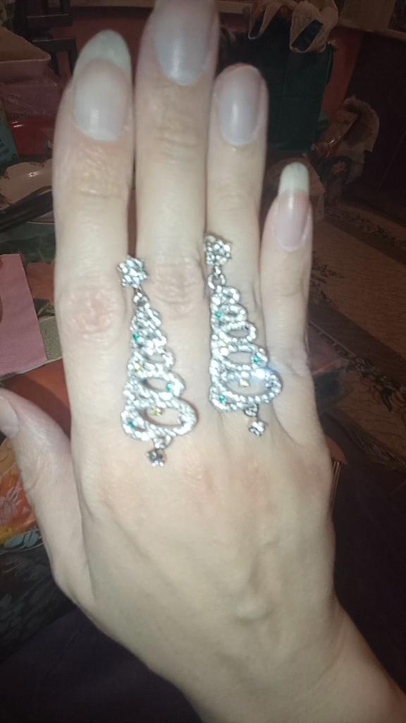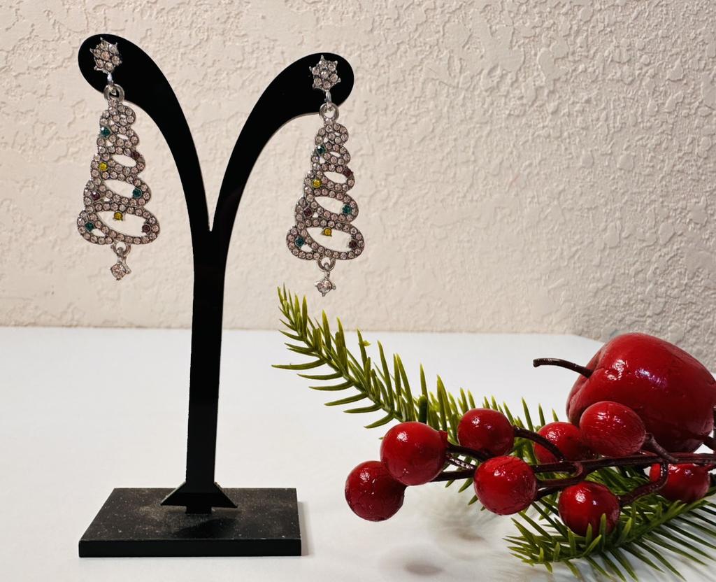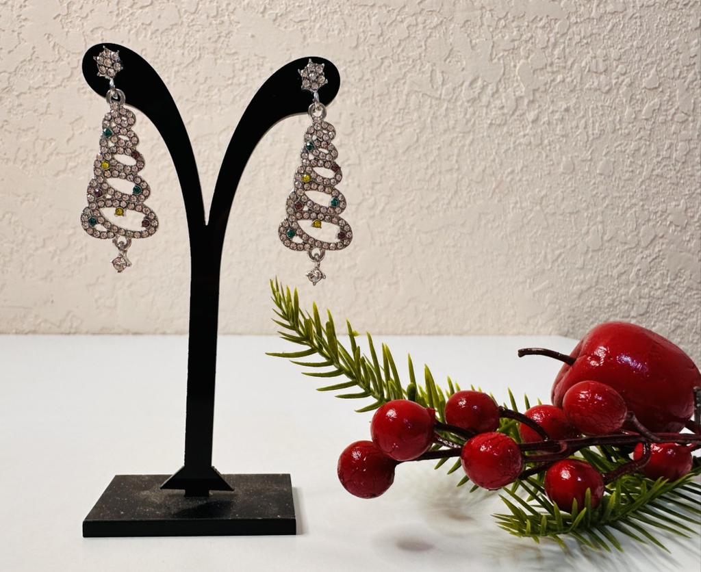 EARRINGS Gorgeous Christmas Tree Earrings with Crystals. They arrived in Italy with tracked shipping in 14 days in a combined package. Well packaged in a bubble wrap envelope they arrived intact. Packaging: plastic wrap In silver color metal in zinc alloy. Firm silicone back closure. They are not heavy despite their large size. They are about 5 cm long. No defects or glue stains. The crystals are well positioned, firm and extremely bright. Recommended purchase 👌