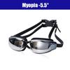 Adult -1.5 To -8.0 Myopia Electroplated Black Color Swim Glasses Waterproof Anti Fog Swim Goggles