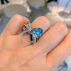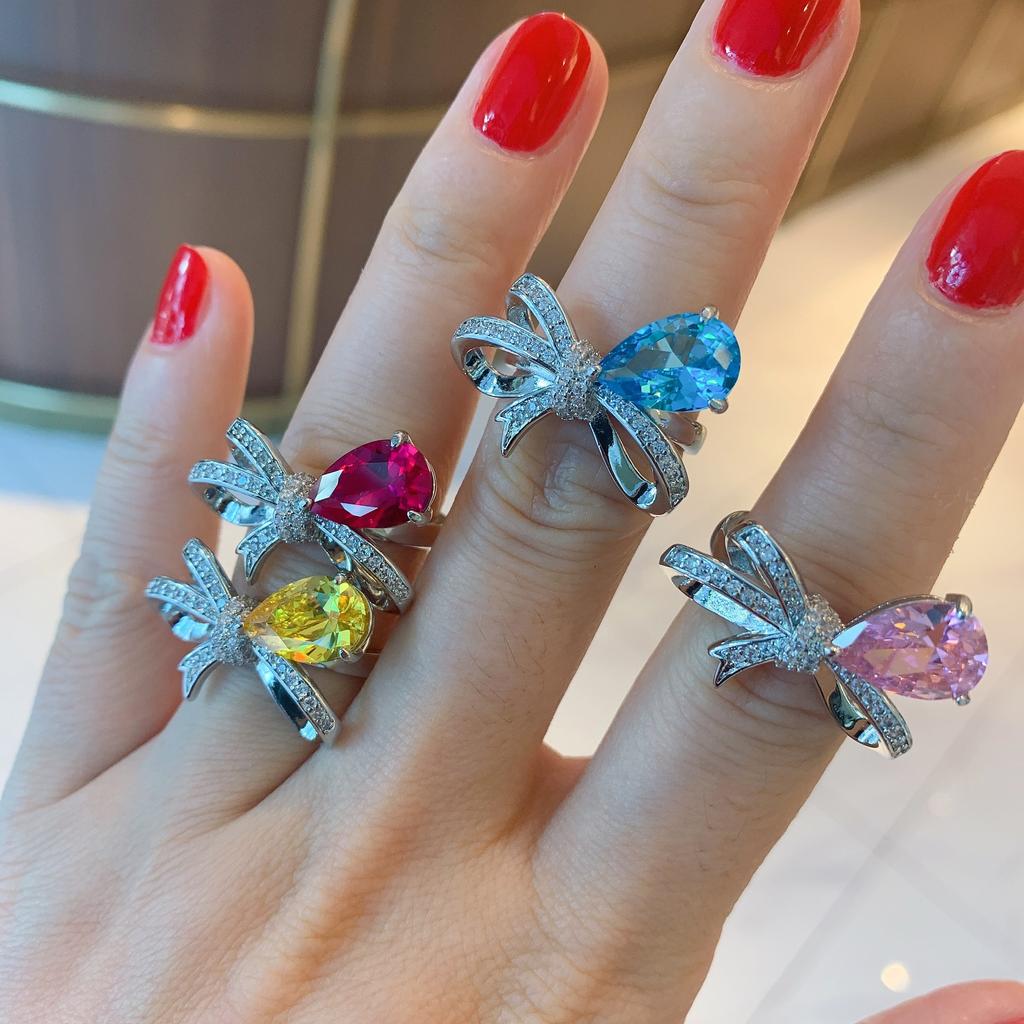 Diamond-set Pear-shaped Sea Blue Diamond Ring, Colorful Treasure Ring, Red Treasure Simulation Ring.