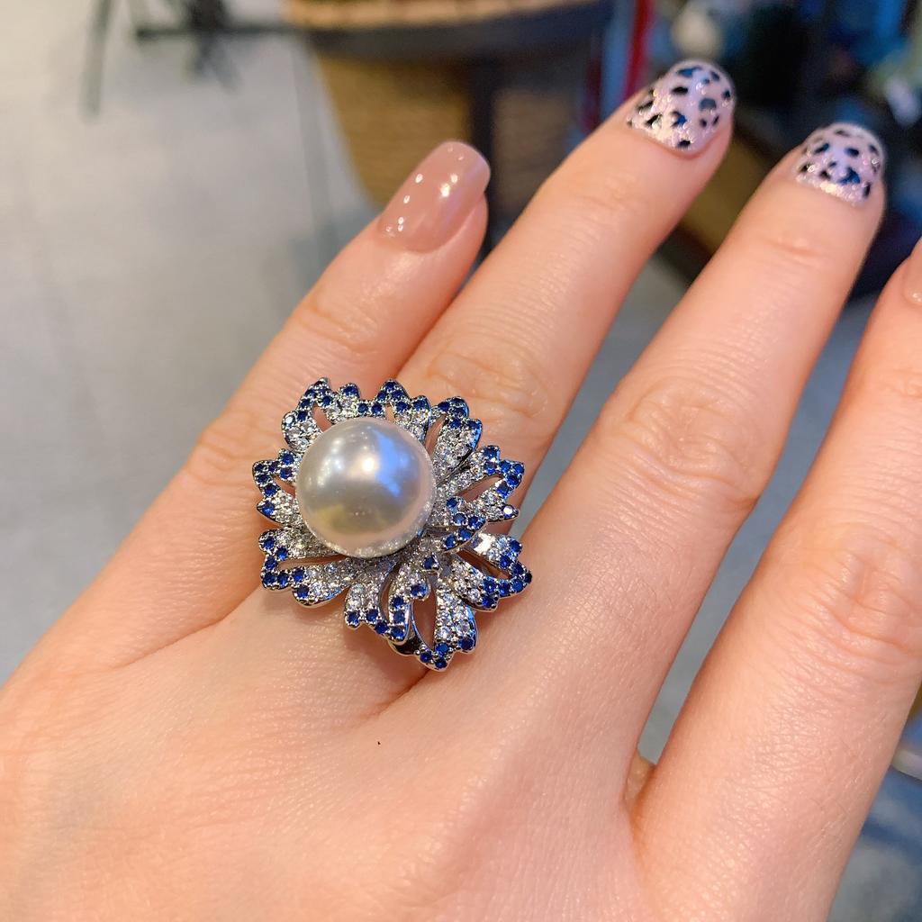Australian Fritillary Pearl Sapphire Diamond, Stylish Ring, Adjustable Ring
