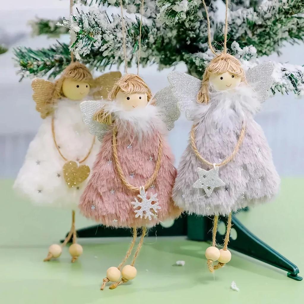 2025 Christmas Tree Pendant Hanging Ornaments Plush Angel Dolls Decoration Xmas Angel Girl Navidad New Year Gifts