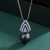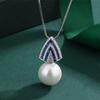 Copper-plated Real Gold Pearl Necklace Stud Earrings Women's Micro-inlaid Blue Diamond Zircon White Pearl Pendant Jewelry Set
