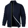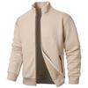 This men's sweater jacket features a stylish stand collar and a convenient zipper closure, making it a versatile addition to any casual wardrobe. Crafted from high-quality polyester material, it offers a standard thickness that is perfect for layering in cooler weather. The long sleeves and slim fit provide a modern silhouette, while the jacquard pattern adds a touch of sophistication. Ideal for both relaxed outings and casual gatherings, this cardigan effortlessly combines comfort with contemporary design.